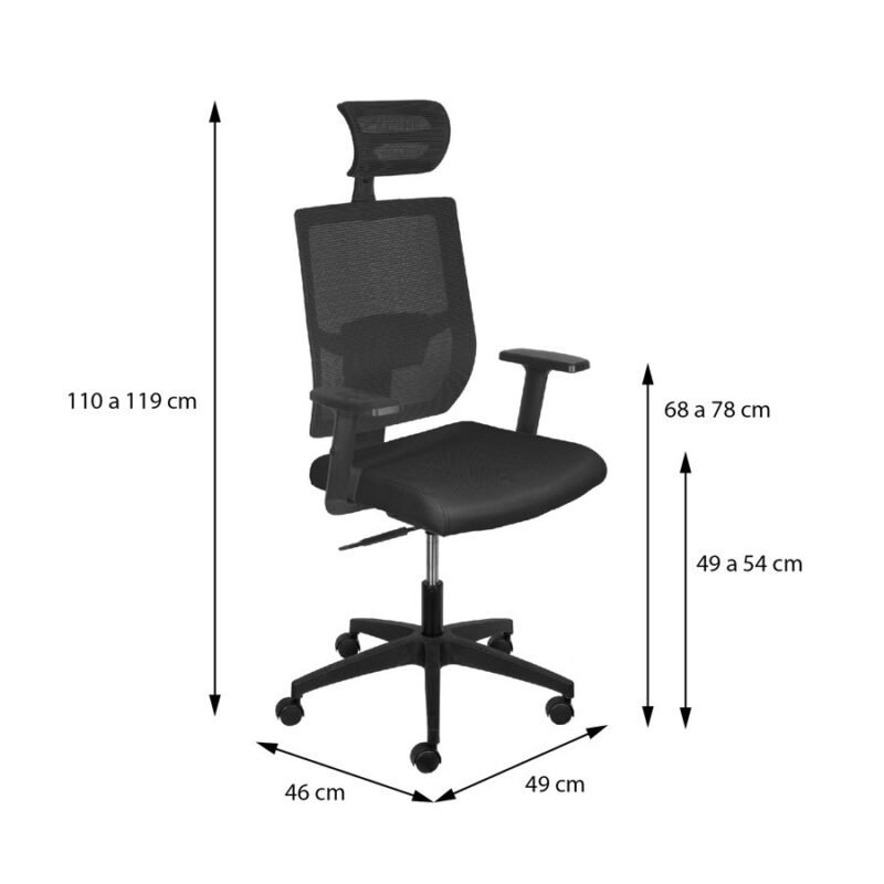 Altura do chão ao assento: 49 a 54, altura do chão ao braço: 68 a 78, altura do chão do encosto: 110 a 119, Largura: 49 , Profundidade: 46