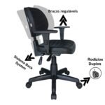 Outros Recursos / Mais Informações: 05 Rodízios Duplos / Telescópio 03 Estágios / Contra Capa Plástica / Regulagem Angular de Encosto
