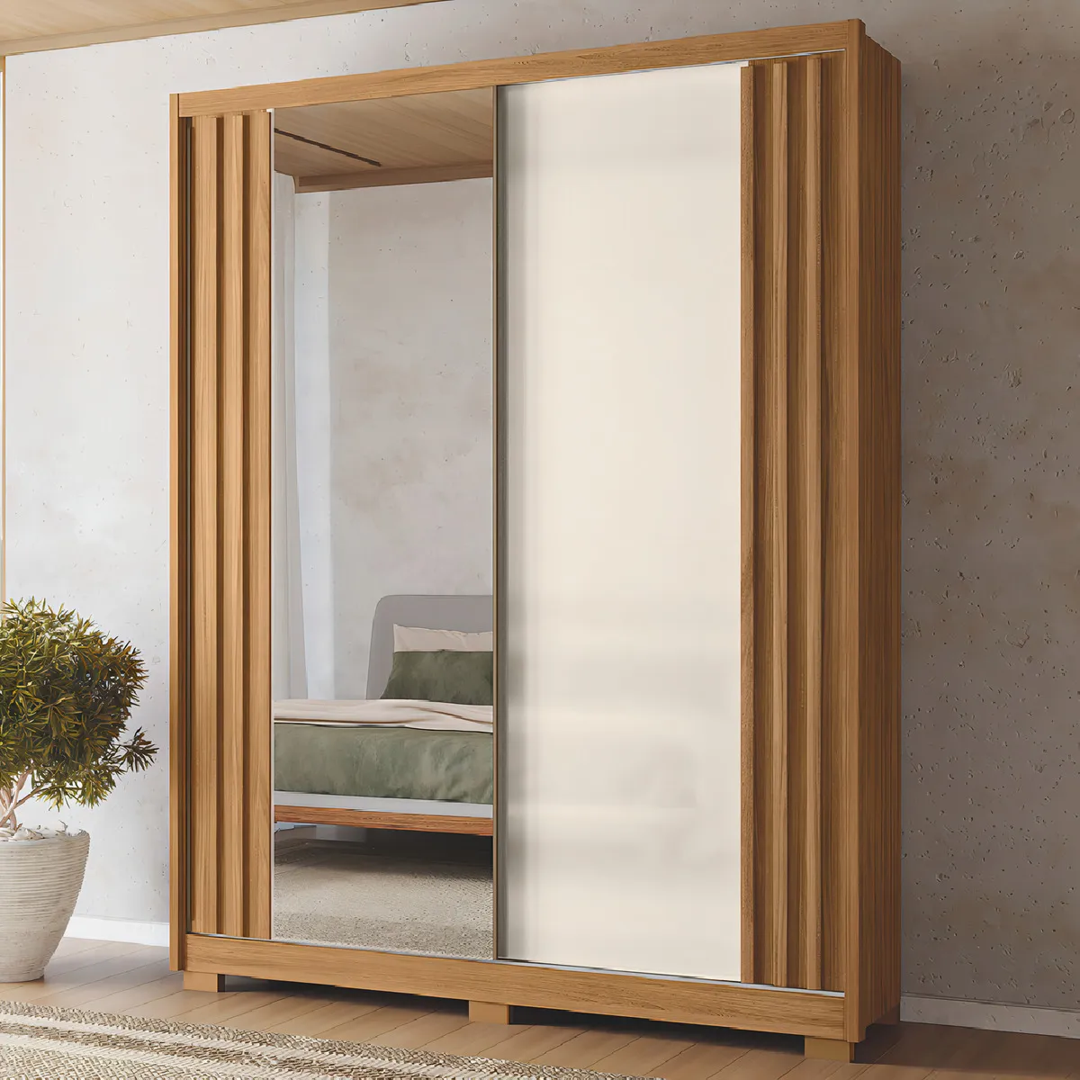 Guarda Roupas Solteiro c/ Espelho 2 ´Portas colorado Cor Freijo /Off White Moval