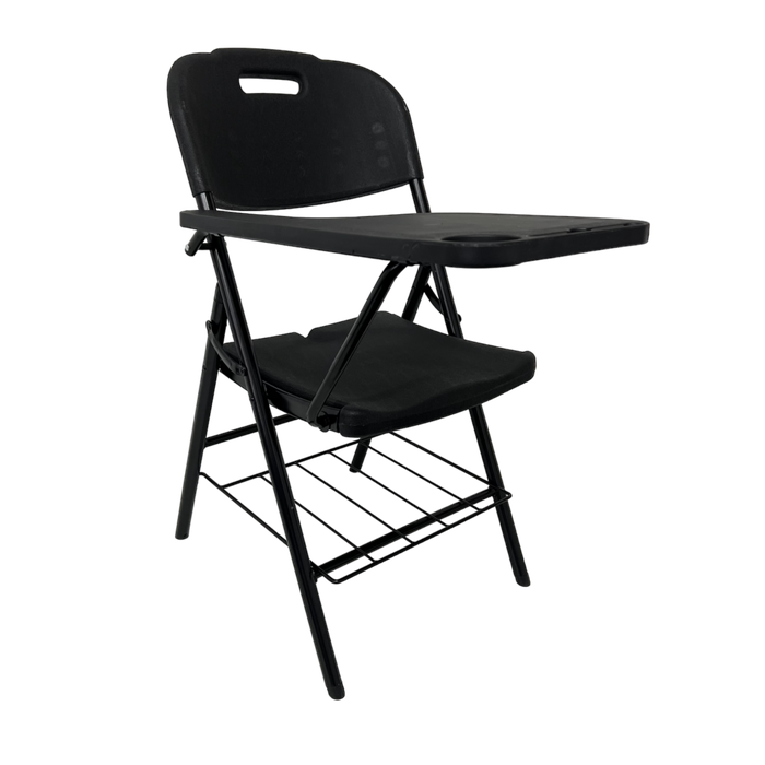 Prancheta: Inclui uma prancheta dobrável e ajustável, ideal para tomar notas, escrever ou usar dispositivos eletrônicos durante aulas, palestras ou reuniões.